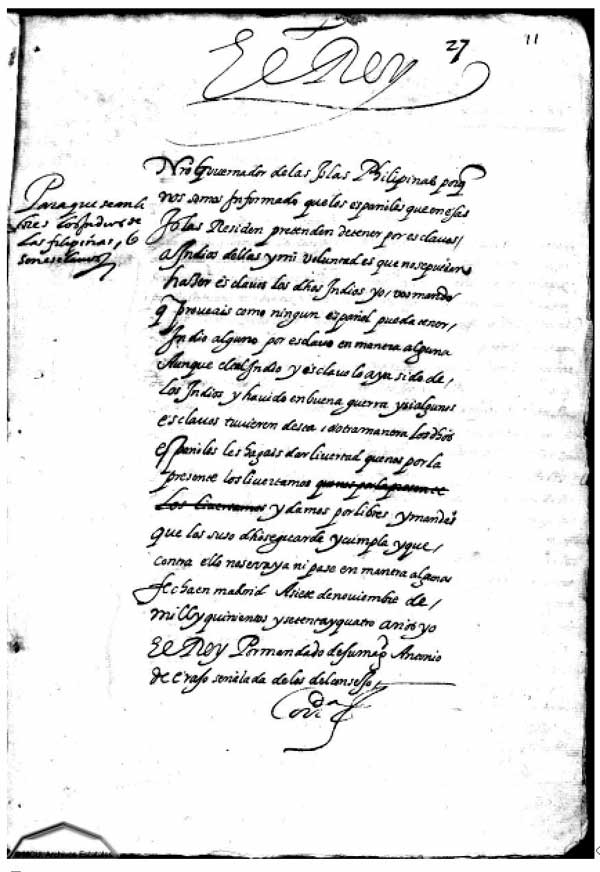 La Esclavitud en las Islas Filipinas Juan Hernández Hortigüela Afirmar que la esclavitud fue uno de los grandes negocios de los países denominados civilizados, hasta finales del siglo XIX, no es descabellado. España, para nuestro desdoro histórico, fue el último país europeo en legislar la abolición total de ese ignominioso tráfico de ébano: la esclavitud. Un decreto del mes de octubre del año 1886, que suprimía el Patronato, terminó con la esclavitud en Cuba, último reducto esclavista de España. Previamente, en el año 1873, se había abolido la esclavitud en nuestra colonia de Puerto Rico. La famosa Ley Moret fue la antorcha legislativa, desde el año 1870 al año 1886 (con la fuerte oposición de la Liga Nacional y del Círculo Hispano-Ultramarino, presidido por el Marqués de Manzanedo) que encendió la luz final de la abolición. Pero, curiosamente, las leyes de abolición no se refirieron nunca a Filipinas; no hacía falta, en Filipinas se había abolido la esclavitud casi trescientos años antes .....Cierto es que España se apuntó, a principios del siglo XIX, a legislar a favor de la anulación del tráfico de esclavos, con objeto de poner impedimentos a la esclavitud, de manera que mediante el Tratado suscrito entre Gran Bretaña y España, el 30 de mayo de 1820, S.M. Católica se obliga a que el tráfico de esclavos quede abolido en todos los dominios de España habilitando cinco meses después de esa fecha para que completen sus viajes los barcos ya en navegación. Pero este Tratado fue meramente un testimonio, porque los negreros no cesaron de recorrer los mares y depósitos, con su cargamento de cabezas negras. Además, este Tratado con Gran Bretaña se refería, en principio, al tráfico, no claramente a la abolición definitiva, que llegó bastantes años después a Europa .....Portugal, dominador de las costas de África desde mediados del siglo XV, convirtió a su capital, Lisboa, en el mercado principal de esclavos negros de África, llegando las ventas de estos, en la mitad del siglo XVI, a más de 40.000 cabezas. .....España siguió el mismo camino porque necesitaba esclavos para enviar a América y Filipinas y porque, justo es decirlo, el tráfico de esclavos era un gran negocio. Desde principios del siglo XVI, se importaban 4.000 esclavos destinados a las plantaciones de Santo Domingo. Barón Fontacín estima que pasaron de trescientos mil los esclavos contratados con particulares, hasta finales del citado siglo. .....No sirven ahora, en el siglo XXI, los arrepentimientos históricos, los grandes escritos políticos de las alabanzas abolicionistas, así como otras informaciones a través de la divulgación de filmes anatemizando los horrores de la esclavitud. Todos los países del mundo arrastran su culpabilidad histórica y así debemos aceptarla. Como también hay que aceptar, hoy, para mayor vergüenza e hipocresía de la mayor parte de las naciones del orbe, que otras nuevas formas de esclavitud (trata de mujeres y niñas, esclavitud laboral de niños, inmigración, drogas, etc) imperan como un gran negocio que, hipócritamente, se denuncian pero que sigue su escalada inevitable, mientras no se promulguen leyes estrictas y se persiga duramente a los infractores para erradicar esa lacra social y sean capaces de mover la conciencia universal. .....Nadie podrá negar, a estas alturas de la historia universal, que ningún gobierno ni ninguna institución hayan trabajado tanto a favor del esclavo, como la iglesia católica. No ha habido un solo pontífice que no haya condenado la esclavitud. La abolición de la esclavitud debe ser considerada como una gran obra del cristianismo. Así lo han reconocido intelectuales de opiniones y credos políticos diferentes. Un gran ejemplo de lo anteriormente escrito se cumplió en las Islas Filipinas. Al poco tiempo de llegar los primeros religiosos agustinos, comenzaron a denunciar la esclavitud de los naturales, consentida por las autoridades civiles, cuyos amos eran los españoles y los propios indios, esclavistas éstos como hábito social extendido desde la época prehispánica. Las denuncias llegaban al rey mediante cartas que le enviaban los religiosos agustinos. .....Fr. Juan de Alva, agustino de casi setenta años, que llegó a Filipinas en el año 1569, escribió una carta, el 28 de julio de 1570, al virrey de Nueva España, denunciando la esclavitud y sus efectos perniciosos en las Islas. Es la primera denuncia, dirigida a instancias mayores, acerca del comportamiento de los españoles que habiendo llegado a Filipinas todo su exerçiçio á sido rrovar para comer, pues el governador no les da nada para se mantener de los trivutos que se cojen, y no solo an dado en rrovar pueblos, an quemado cantidad dellos, así destas tres provincias, como de todas las comarcanas a ellas, y lo que es más mal, pareçe an hecho cantidad de esclavos, siendo libres, quitando la hija de su madre y el hijo de su padre (1) (1) AGI, Patronato 24, ramo 9. Transcrito en Patricio Hidalgo Nuchera, Los Primeros de Filipinas, Doc. 33, pág.283. .....Es en el "Memorial de los Religiosos de las Islas de Poniente de cosas que el Padre Fray Diego de Herrera a de tratar con su Majestad o su Consejo Real de Yndias" escrito en el año 1573, para que sea llevado a España por Fr. Diego de Herrera, cuando se presenta la esclavitud de Filipinas con mayor crudeza. El memorial refleja las denuncias que han de hacerse, acerca del comportamiento de los españoles con los indios, Que se da por guerra justa en consejo de guerra, si los yndios dizen que no quieren el amistad de los españoles, o si hazen algún fuerte para defenderse, y a estos matan, cautivan, rovan, queman las casas... .. y en todas estas mataron mucha gente y cautivaron y vendieron por sclavos... Que se da por guerra justa en el consejo de guerra para destruyr un pueblo y hazer sclavos los que pudieren cautivar Que han vendido muchos sclavos, y otros retienen que son mal avidos,